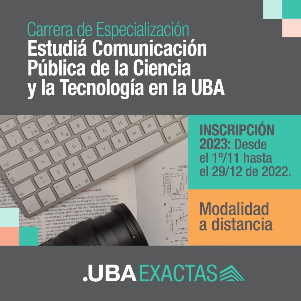 Si te interesa, la inscripción a la carrera está abierta hasta el 29/12/2022. Más información en comunicacion.exactas.uba.ar/carrera.especializacion/